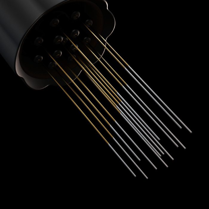 標配 12 支針頭與 3 支備用針,使用者可根據濾杯形狀(錐形或平底)及粉量需求,自由調整針位配置。模組化設計不僅方便清潔保養,更確保了工具能適應各種沖煮情境。