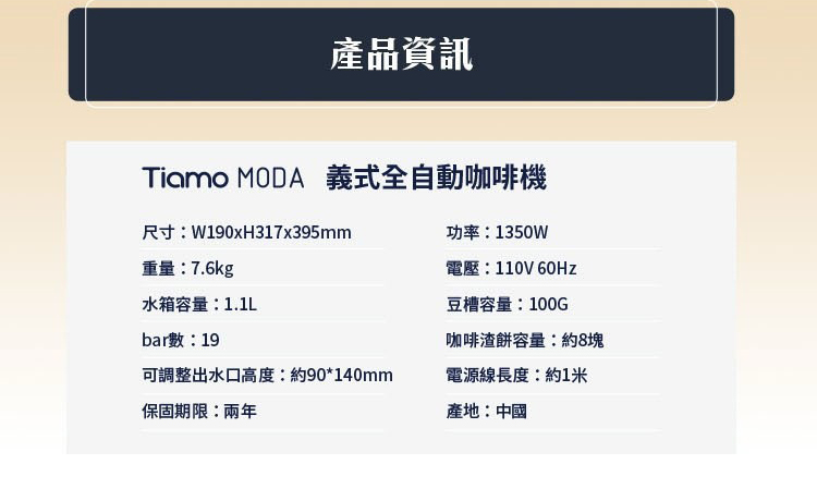 • *限宅配-Tiamo MODA 義式全自動咖啡機